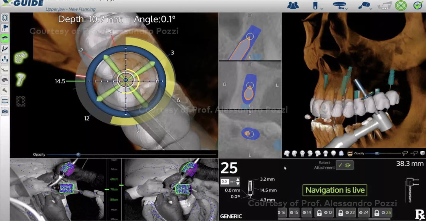従来のフリーハンド手術と異なり、正確な位置に一度でインプラントを埋入できるため、手術時間が短縮され、治療全体のスピードアップにつながっています。