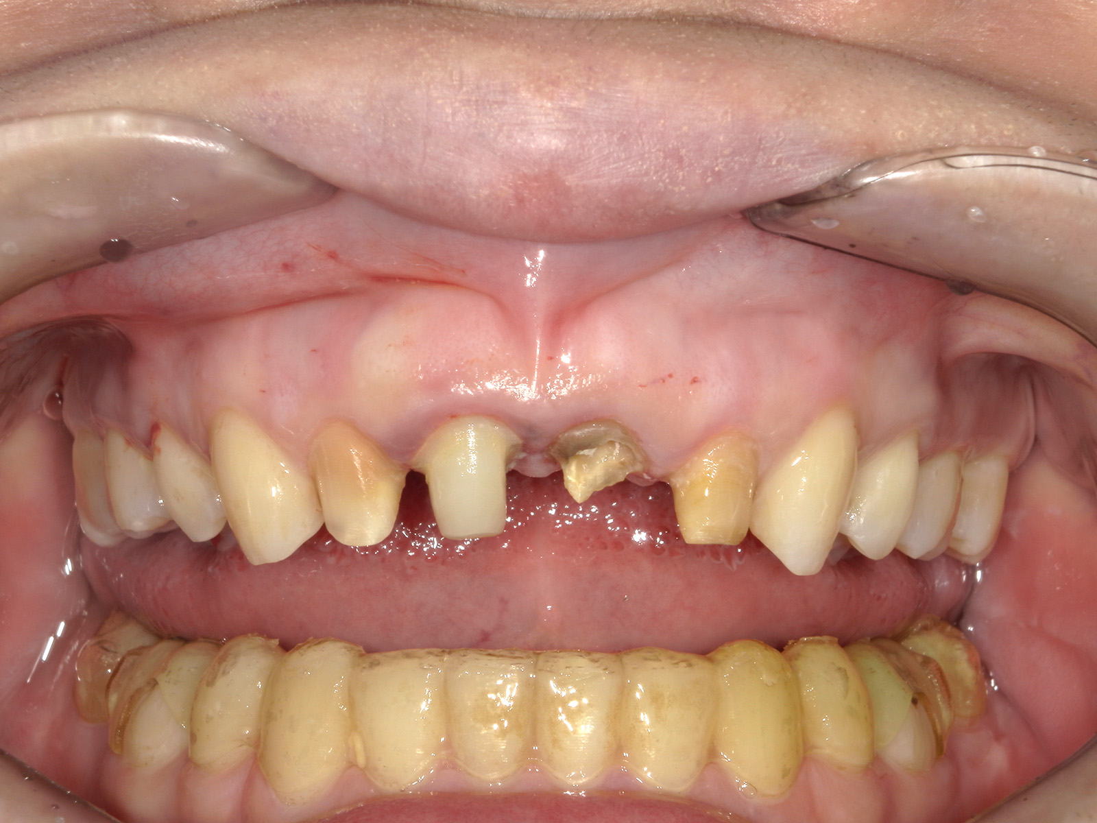 歯が大きく欠け、根だけが残った状態では、被せ物の装着が難しくなります。